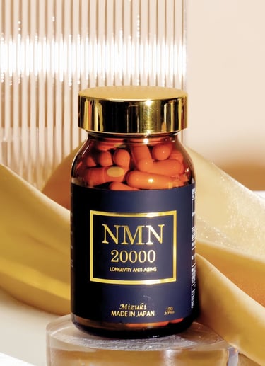 NMN Mizukiカプセルを通じて。例えば、NMN 20,000カプセルは1粒あたり200mgのNMNを含有しており、これは200食分に相当します。